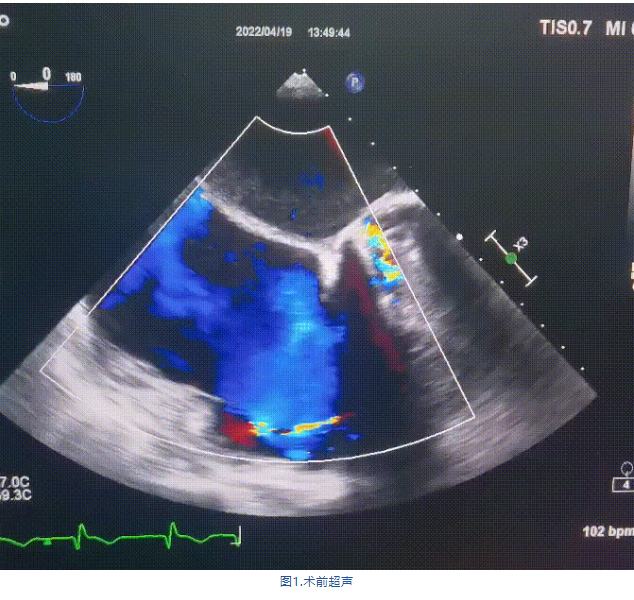 3.三尖瓣環(huán)巨大擴(kuò)張,收縮期瓣葉對合不攏,收縮期三尖瓣房側(cè)見大量反流信號,反流面積15-20cm²,TRVmax:240cm/s,跨瓣壓差:23 mmHg。