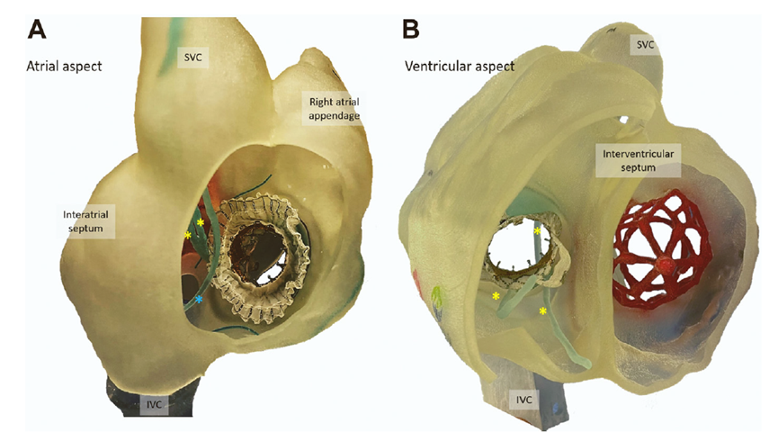 術前CT分析結(jié)果顯示,瓣環(huán)大小為47.6mm,血管無明顯迂曲和鈣化。由于患者三尖瓣解剖結(jié)構(gòu)復雜,二尖瓣位人工瓣膜造成的超聲偽影和ICD導線的干擾使得歐洲沒有其他合適的商業(yè)化和臨床試驗的產(chǎn)品可以對其進行治療。經(jīng)過Rodrigo Estévez-Loureiro教授團隊的詳盡術前評估,認為LuX-Valve Plus經(jīng)導管三尖瓣置換系統(tǒng)可以對該患者進行有效的治療。因此,Rodrigo Estévez-Loureiro教授團隊最終決定使用這一中國創(chuàng)新器械為患者進行手術。法國波爾多大學附屬醫(yī)院的Thomas Modine教授與加拿大圣保羅醫(yī)院的Anson Cheung教授參與指導。