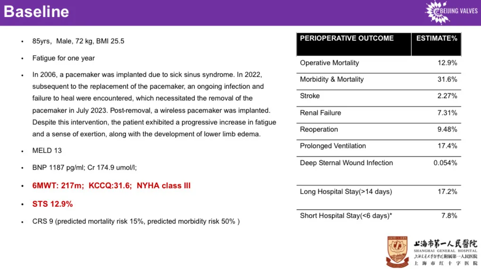 ● 中歐攜手,全球視野,下午半場(chǎng)的首輪直播,來(lái)自法國(guó)波爾多里爾大學(xué)中心醫(yī)院的Thomas Modine教授與來(lái)自上海市第一人民醫(yī)院的陸方林教授,攜手LuX-Valve Plus,共同完成一臺(tái)極高外科風(fēng)險(xiǎn)、解剖結(jié)構(gòu)復(fù)雜的經(jīng)頸靜脈三尖瓣介入置換手術(shù)。陸方林教授介紹,該例患者身體基礎(chǔ)情況較差,STS評(píng)分達(dá)12.9%,屬于外科極高危手術(shù),無(wú)法進(jìn)行傳統(tǒng)外科手術(shù)治療,且存在起搏器導(dǎo)線(xiàn)感染拔除病史,對(duì)三尖瓣瓣葉造成無(wú)法逆轉(zhuǎn)的醫(yī)源性損傷,瓣葉脫落、腱索斷裂,已無(wú)法進(jìn)行三尖瓣緣對(duì)緣修復(fù)。結(jié)合MDT團(tuán)隊(duì)討論與海外專(zhuān)家溝通交流,手術(shù)團(tuán)隊(duì)計(jì)劃使用30-55型號(hào)LuX-Valve Plus瓣膜完成本次手術(shù)。