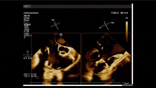術(shù)中經(jīng)食道超聲輔助下可見LuX-Valve Plus夾持件抓捕瓣葉狀態(tài)良好,夾持件在位,室間隔錨定位置良好,假體瓣膜整體錨定狀態(tài)穩(wěn)固。