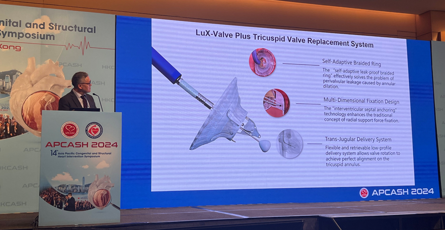在2024年12月8日中國香港舉行的APCASH大會“Transcatheter Valve Replacement For The Forgotten Valve - The New Frontier”環(huán)節(jié),LuX-Valve Plus 成為會議的焦點,展示了其在經(jīng)頸靜脈三尖瓣置換(TTVR)中的卓越表現(xiàn)以及在臨床治療中的創(chuàng)新潛力。通過一年的臨床隨訪數(shù)據(jù)以及真實病例分享,LuX-Valve Plus 進一步證明了其在解決三尖瓣反流治療中未滿足需求方面的重要作用。