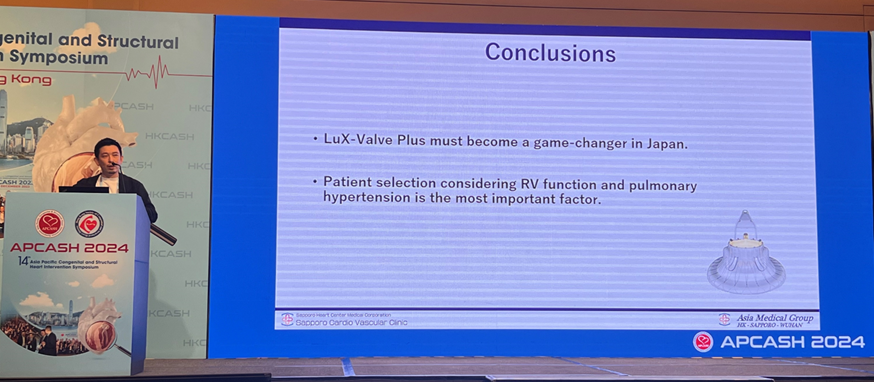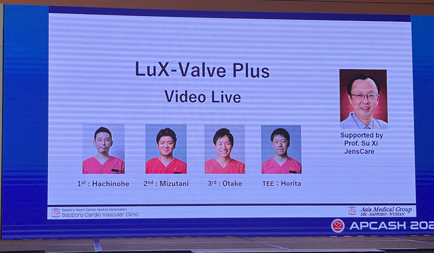 日本札幌心血管醫(yī)院的Daisuke Hachinohe教授分享了一例同武漢亞洲心臟病醫(yī)院(Wuhan Asian Heart Hospital, Whan, China)的蘇晞(Xi SU)院長聯(lián)手進行的 LuX-Valve Plus 病例,詳細展示了經(jīng)導(dǎo)管三尖瓣置換的操作步驟和技術(shù)要點。這也是 LuX-Valve Plus 在日本的首例植入。Hachinohe教授稱贊 LuX-Valve Plus 將成為日本三尖瓣反流治療的game changer。