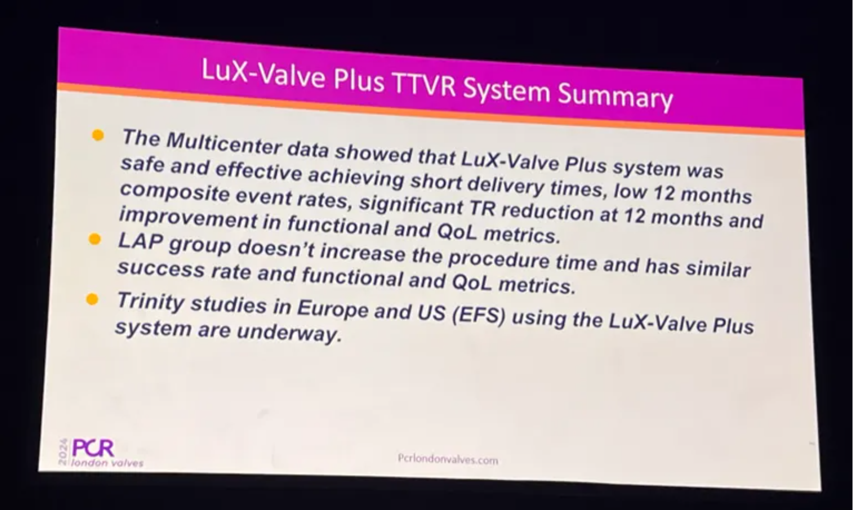 ● LuX-Valve Plus 在大瓣環(huán)患者應(yīng)用中的一年期隨訪數(shù)據(jù)在 PCR London Valves 2024 分享